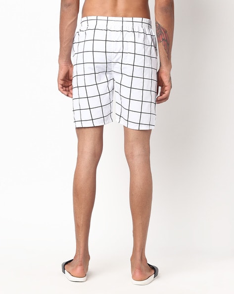 Men White & Lime Green Checked Lounge Shorts